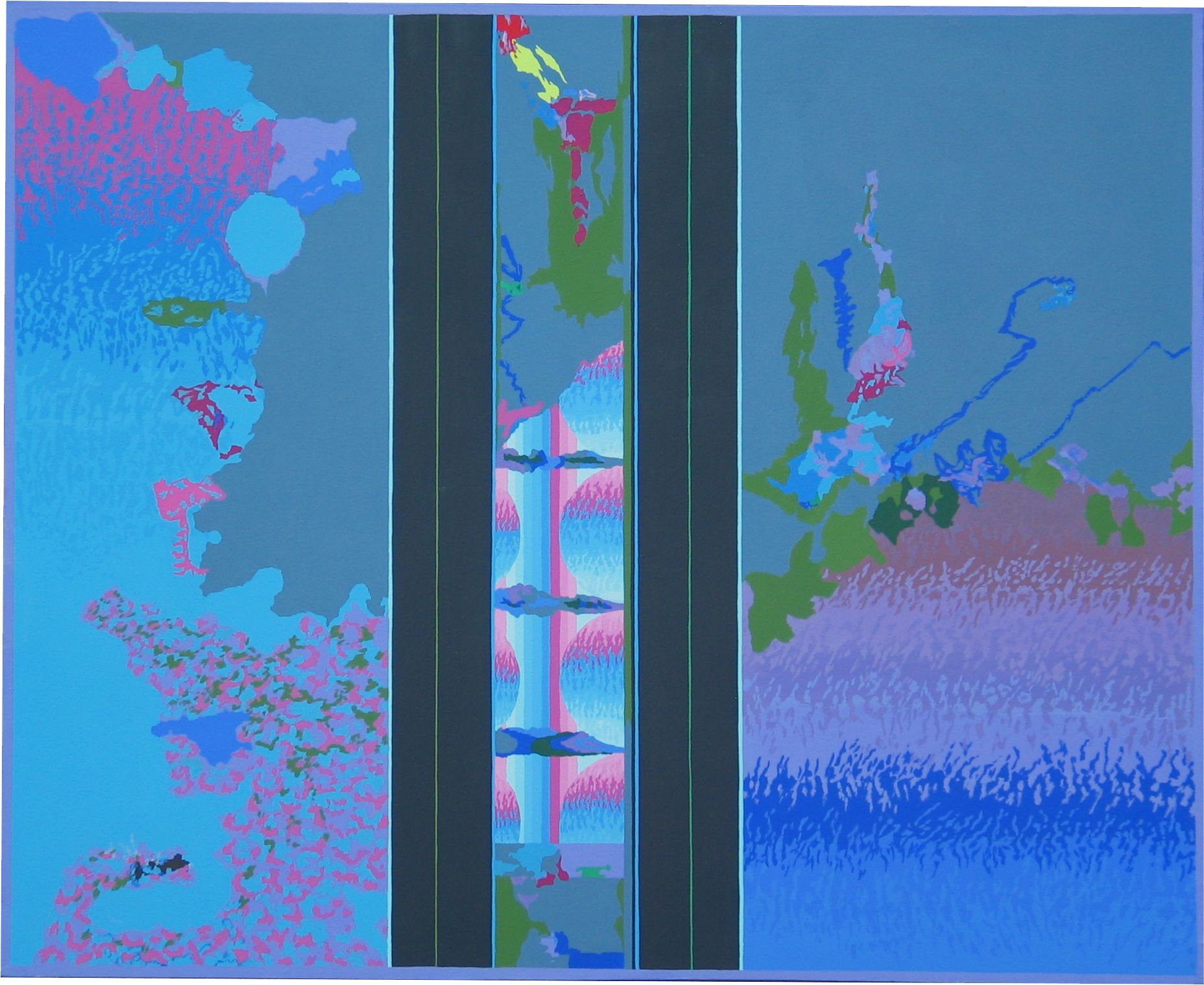 The acrylic pieces that I have painted since 1960 are my most involved works. I think of them as being akin to novels or symphonies in that they are very involved, take a great deal of time, and require many preliminary studies (at most I produce 6-8 paintings a year, and many years less). My underlying focus and motivation is energy, thus my keynote–“begin with energy and go from there”.